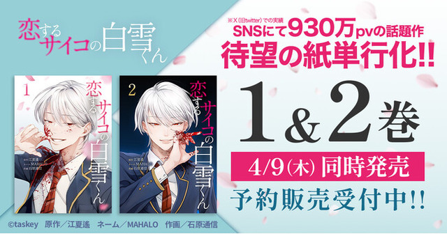 原作開発やマンガ制作などのIP創出事業を手がけるエンタメスタートアップ taskey株式会社(本社:東京都新宿区、代表取締役CEO:大石弘務)は、taskey STUDIO人気作品『恋するサイコの白雪くん』の紙単行本の発売が決定したことをお知らせします。