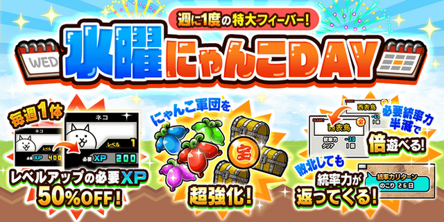 ポノス株式会社(本社:京都府京都市、代表取締役:辻子依旦、以下「ポノス」)が提供するスマートフォン向けゲームアプリ『にゃんこ大戦争』が、期間限定イベント「水曜にゃんこDAY」を、2026年2月18日(水)0:00より開始いたしました。