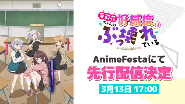 株式会社ウェイブ(本社:東京都豊島区、代表:関口航太)が運営するアニメ見放題サービス「AnimeFesta(アニメフェスタ)」にて、2026年3月13日(金)17:00より、TVアニメ『茉莉花ちゃんの好感度はぶっ壊れている』を独占先行配信することが決定しました。