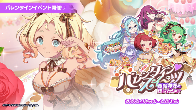 [画像2: https://prcdn.freetls.fastly.net/release_image/1290/1159/1290-1159-277ff05a9beeb80f58d04b2eac99ef87-800x418.png?width=536&quality=85%2C75&format=jpeg&auto=webp&fit=bounds&bg-color=fff ]2026年2月18日(水)メンテナンス後より、バレンタインイベント『バレンタイン・スイーツ 悪魔姉妹の想いを込めて』を開始いたしました。