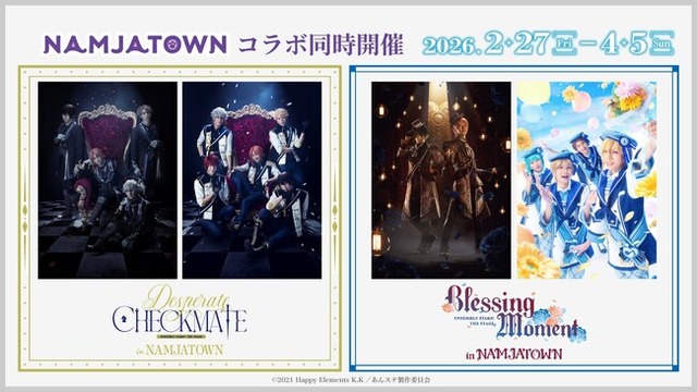株式会社バンダイナムコエクスペリエンスが企画・プロデュースする屋内型テーマパーク「NAMJATOWN(ナンジャタウン)」(東京・池袋)は、スマートフォン向けゲームアプリ『あんさんぶるスターズ!』の舞台化作品、『あんさんぶるスターズ!THE STAGE』-Desperate Checkmate-・『あんさんぶるスターズ!THE STAGE』-Blessing Moment-とのコラボレーションイベントを2026年2月27日(金)から4月5日(日)まで開催します。