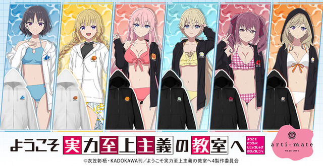 漫画・アニメのオリジナルグッズを販売する株式会社アルマビアンカ(本社:東京都中野区、代表取締役:坂井智成)は、『TVアニメ「ようこそ実力至上主義の教室へ」』から「arma bianca」 × 「アニメイト」による共同ブランド「arti-mate」のオリジナルアパレル、雑貨をアニメイト池袋本店4F、秋葉原1号館3F、渋谷、梅田 「Space A la mode」にて、2026年4月25日(土)から限定販売いたします。2026年2月19日(木)よりアニメイト通販でも事前予約を開始いたします。