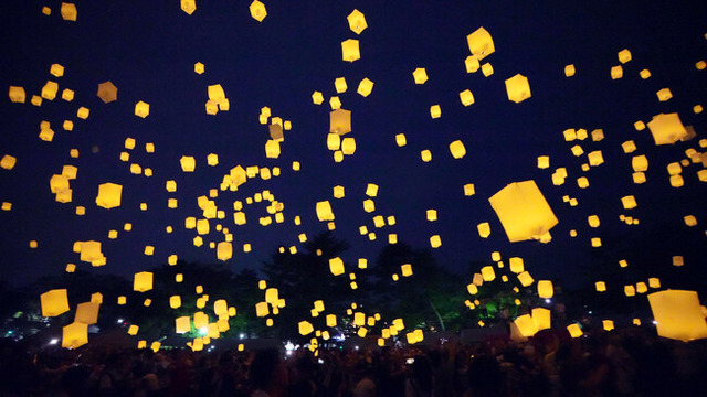 ランタンが夜空へ舞い上がる感動と、サックス侍の心に響く音色。