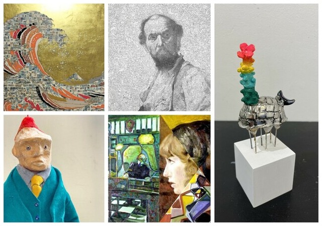 サガキケイタの作品は、一見すると有名な古典絵画やアイコン的なイメージを再現したものに見えるが、近づいて観ると無数の小さなキャラクターや即興的なドローイングによって構成されているという独自の手法が特徴である。
