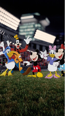 サーキットを背景にした「ミッキーと仲間たち」のエネルギーは、本コレクションの実験的で大胆な試みを表現し、強烈で没入感のある体験を提供します。