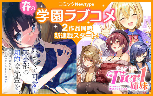 株式会社KADOKAWA(本社:東京都千代田区、取締役 代表執行役社長 CEO:夏野剛)は、WEBマンガメディア「コミックNewtype」にて『Tier1姉妹 有名四姉妹は僕なしでは生きられない』『小さくて可愛い文芸部の知的な先輩を、膝の上に乗せたら毎日座ってくるようになった』の連載を2026年3月3日(火)より開始します。