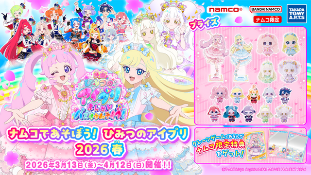 株式会社バンダイナムコエクスペリエンスは、ゲーム&アニメ『ひみつのアイプリ』とのキャンペーン『ナムコであそぼう!ひみつのアイプリ2026春』を3月13日(金)~4月12日(日)まで、全国のアミューズメント施設「ナムコ」および「ナムコオンラインクレーン」(以下ナムクレ)で開催します。