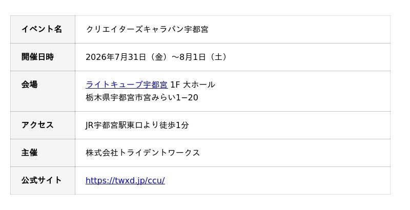 ◤『クリエイターズキャラバン宇都宮』開催概要◢