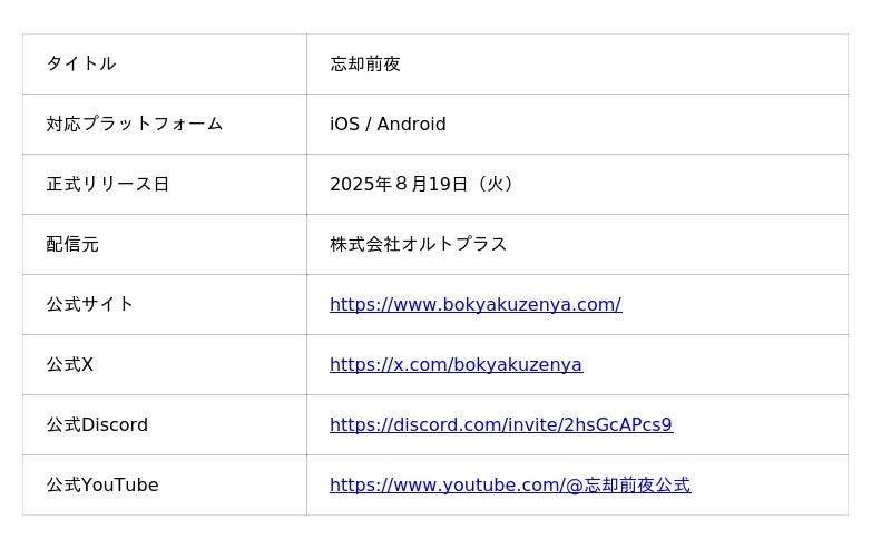 今後の展開やキャンペーンの最新情報につきましては、『忘却前夜』公式X(https://x.com/bokyakuzenya)およびゲーム内お知らせにて随時発信してまいります。