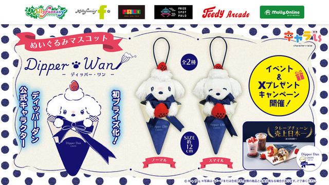 限定プライズ用景品の展開を記念し、モーリーファンタジー公式Xでは、「クレープ無料券5枚+ディッパー・ワンの20cmぬいぐるみ1体」が抽選で5名さまに当たるSNSキャンペーンを開催いたします。詳細は公式アカウントをご確認ください。
