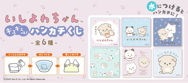 日本出版販売株式会社(代表取締役社長:富樫 建、略称:日販)は、サンエックス株式会社(代表取締役社長:千田 洋史)が手がけるキャラクター「いしよわちゃん」とコラボレーションした「いしよわちゃん ギュギュっと!ハンカチくじ」を、2026 年3 月10日(火)に新発売します。発売以降、全国の書店・雑貨店にて順次販売を開始します。