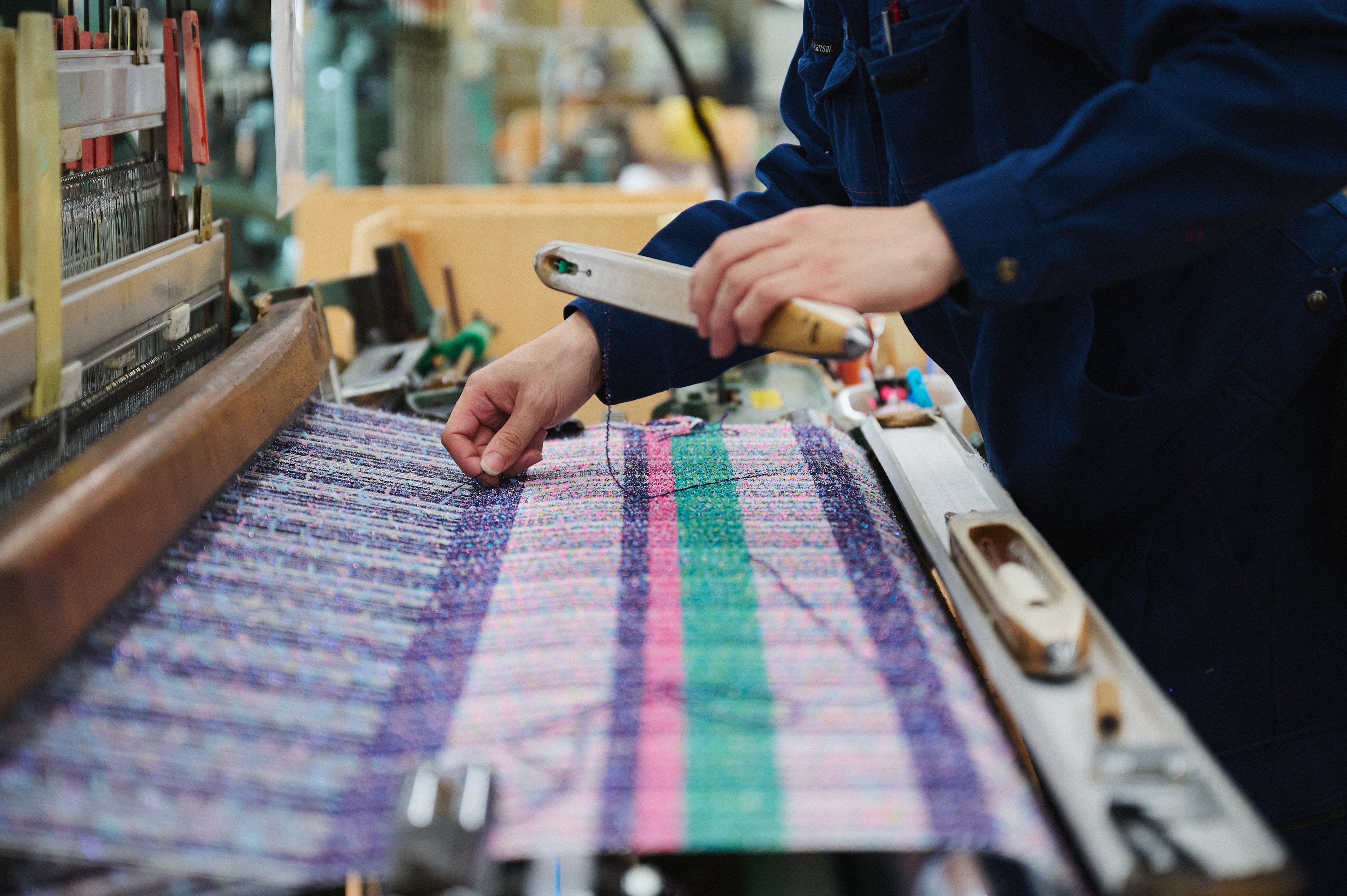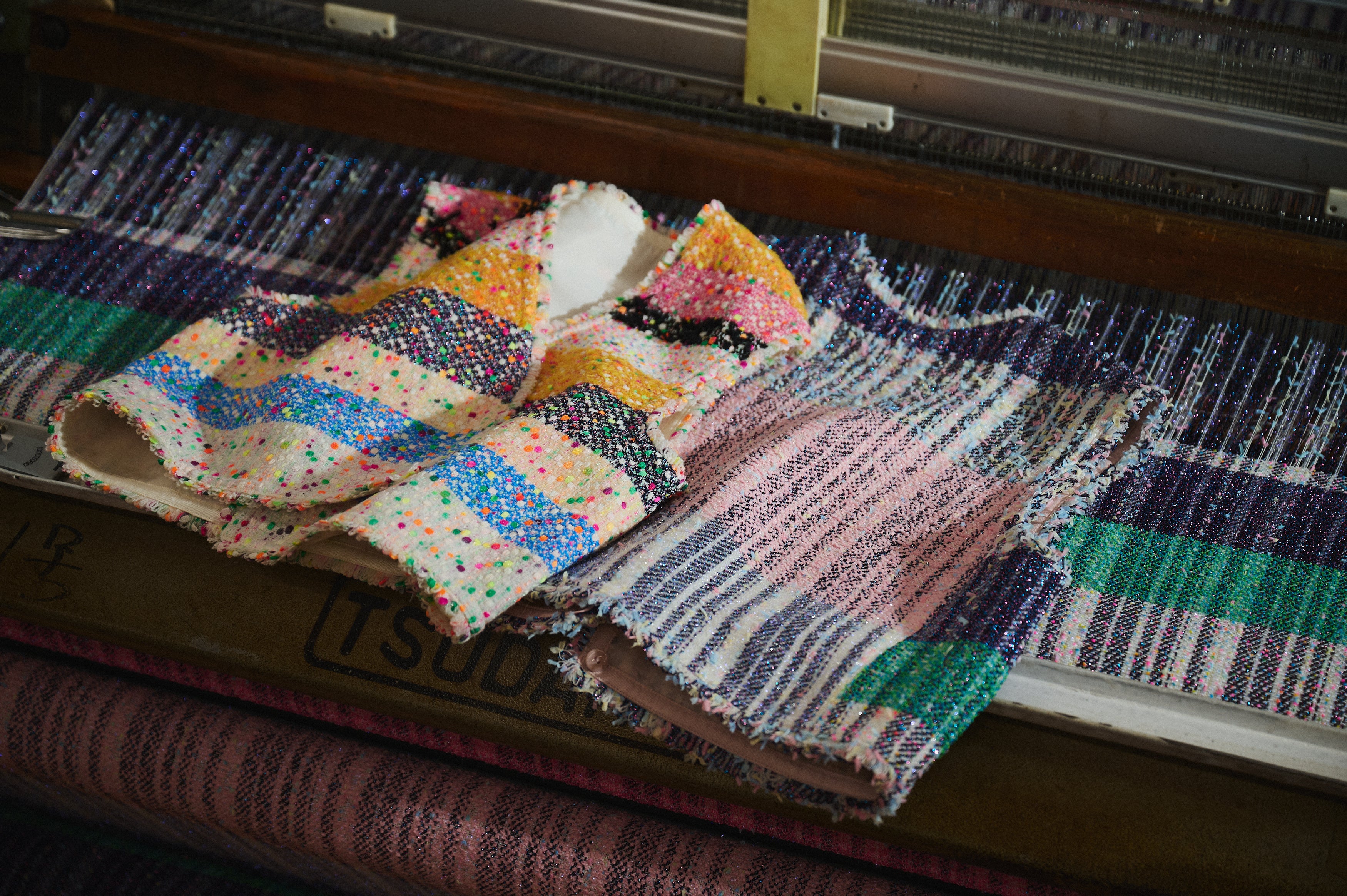 日本ホームスパンの職人が良子氏のデザインををもとに生地を設計、製造
