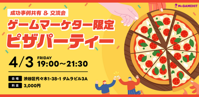 ゲームマーケターが抱える課題は日々尽きませんが、マーケター同士が気軽に話せる機会は意外と少ないものです。 「セミナー形式の勉強会は少し重いけれど、業界の人とは繋がりたい」 そんな声に応え、年間720タイトル以上の取材実績を持つ「Mr.GAMEHIT」が、これまで蓄積してきた知見を皆様に還元するとともに、美味しいピザを囲みながら、社外のマーケターとフラットに語り合える場をご用意しました。お申し込みはこちら