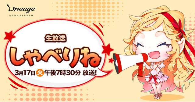 『リネージュ』の最新情報をお届けする生放送「しゃべりね」が3月17日(火)に決定しました。