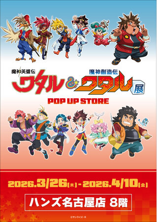 マンガ、アニメ、特撮などを始めとするサブカルチャーをテーマとした企画展を開催・運営している株式会社CRAZY BUMPは2026年3月26日(木)~2026年4月10日(金)の期間でハンズ名古屋店にて開催する【魔神英雄伝ワタル&魔神創造伝ワタル展POP UP STORE in ハンズ名古屋店】の情報を公開致します。