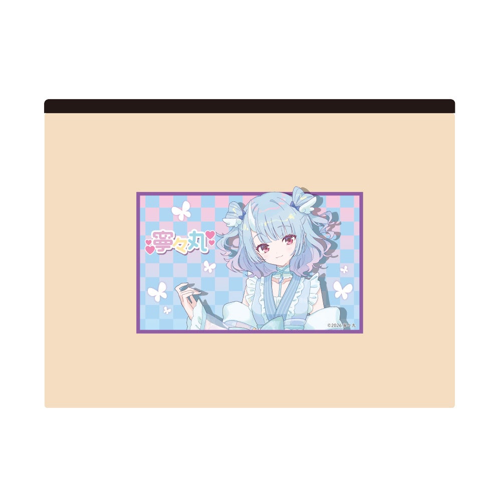 今回のコラボのために用意された、パステルカラーのチェック柄と蝶が舞う幻想的なデザインの限定グッズが多数ラインナップ。定番のアクリルフィギュアや缶バッジから、デスクマット、さらには普段使いに嬉しいアパレルアイテムまで、寧々丸の魅力を詰め込んだ完全受注生産でお届けします。