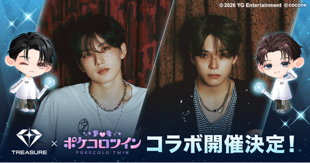 ココネ株式会社(本社:東京都世田谷区、代表取締役社長:石渡 真維、以下「ココネ」)は、アバターの着せかえやお客様同士のコミュニケーションが楽しめるスマートフォン向けアプリ『ポケコロツイン』において、グローバルボーイズグループ『TREASURE』の「JUNKYU」「ASAHI」とのコラボレーション企画を、2026年3月19日(木)より4月19日(日)まで期間限定で開催することをお知らせします。