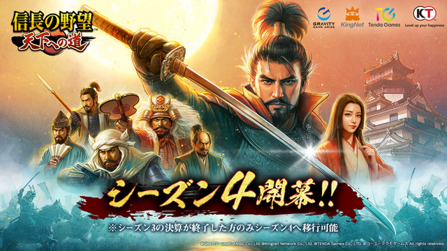 グラビティゲームアライズ株式会社(所在地:東京都中央区)は、スマートフォン向けゲームアプリ『信長の野望 天下への道』において、2026年3月18日(水)よりシーズン4を開始することをお知らせいたします。