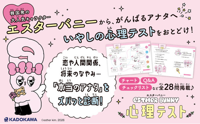 株式会社KADOKAWA(本社:東京都千代田区、取締役 代表執行役社長 CEO:夏野 剛)は、『エスターバニー 心理テスト』を2026年3月18日(水)に発売しました。