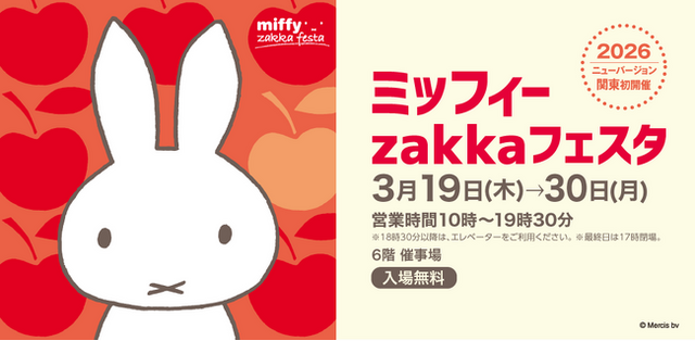 松坂屋上野店は3/19(木)~30(月)、「ミッフィーzakkaフェスタ」を開催いたします。2026年版のニューバージョンは、関東で初開催!イベント限定品をはじめ 1,000点以上のグッズが大集合!今回のテーマカラーである「あか」の世界が広がるフォトスポットも登場。ミッフィーのかわいい世界を満喫できる12日間です。