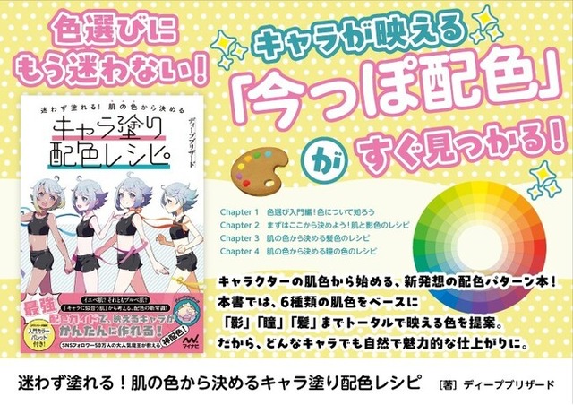 [画像4: https://prcdn.freetls.fastly.net/release_image/16440/108/16440-108-f89cf9ff6167fb2508d5c951fe75373a-1061x1500.jpg?width=536&quality=85%2C75&format=jpeg&auto=webp&fit=bounds&bg-color=fff ]迷わず塗れる!肌の色から決めるキャラ塗り配色レシピ著作者名:ディープブリザード
