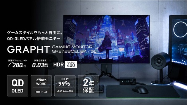 この度、毎日の当たり前をアップデートする『GRAPHT STANDARD』シリーズより、QD-OLEDパネル搭載ゲーミングモニター『GR2728OEL-BK』を2026年3月27日(金)にGRAPHT公式ECサイト(GRAPHT OFFICIAL STORE)およびAmazonにて発売いたします。