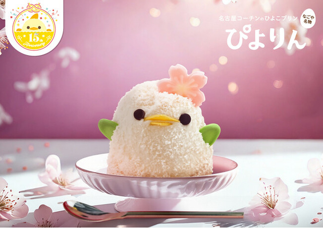 名古屋コーチン卵を使用した濃厚なプリンの下に、やさしい甘さのさくら餡のもちもちジュレをしのばせ、さくら風味のババロアで包み込みました。ほんのりピンク色のさくら風味クラムとスポンジが春らしさを引き立て、頭にはさくらの形のチョコレートをあしらいました。さくらの風味をたっぷりと詰め込んだ、見ても食べても春を感じるぴよりんです。[画像2: https://prcdn.freetls.fastly.net/release_image/124425/168/124425-168-c121b64c58f5e1dafa1f2a35729e7585-1200x848.jpg?width=536&quality=85%2C75&format=jpeg&auto=webp&fit=bounds&bg-color=fff ]