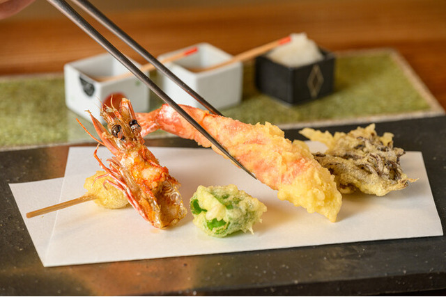 ランチでは、揚げたての天ぷらを中心に気軽に楽しめる天ぷらコースと、旬の料理とともに味わう天ぷら会席をご用意しております。