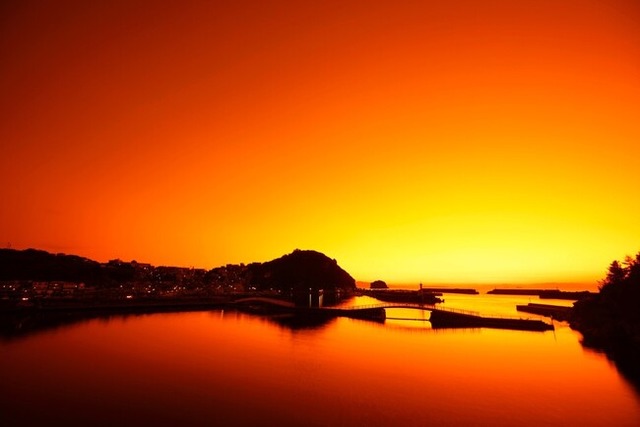 空と海が溶け合うように、深く染まっていく「雑賀崎(さいかざき)の夕暮れ」