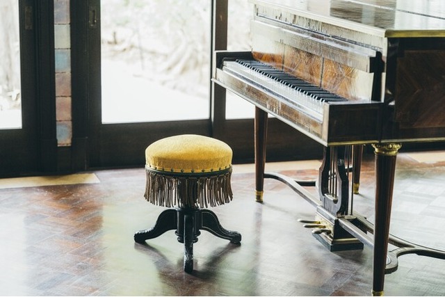 修繕された大田黒公園記念館のピアノスツールこのピアノスツールは、大田黒公園内にある、昭和8(1933)年に建てられた洋館風建築「旧大田黒家住宅洋館」(現:大田黒公園記念館)に残る貴重な家具のひとつです。