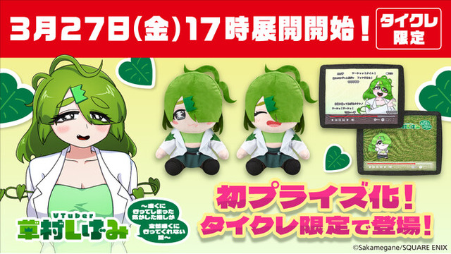 株式会社タイトー(本社:東京都新宿区、以下タイトー)が運営する、おうちでクレーンゲームが楽しめる「タイトーオンラインクレーン(以下タイクレ)」にて、「ガンガンpixiv」で大人気連載中の「VTuber草村しげみ~遠くに行ってしまった気がした推しが全然遠くに行ってくれない話~」初のプライズが、3月27日(金)17時より登場します。