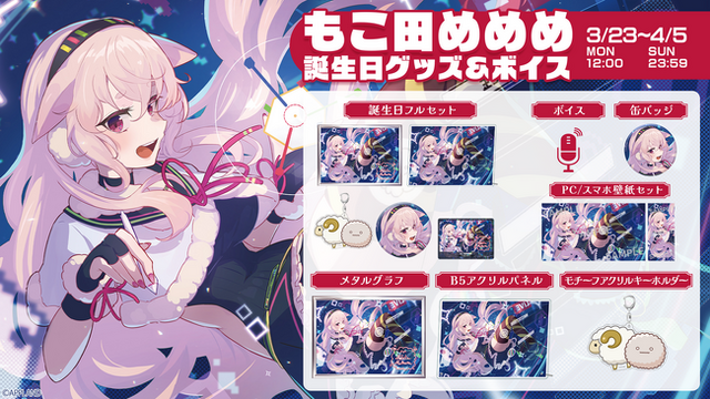 2026年3月23日(月)に誕生日を迎えるもこ田めめめを記念したグッズ&ボイスが全9種類登場!APPLAND OFFICIAL SHOP(https://4693.live/)にて同日12時から販売いたします。