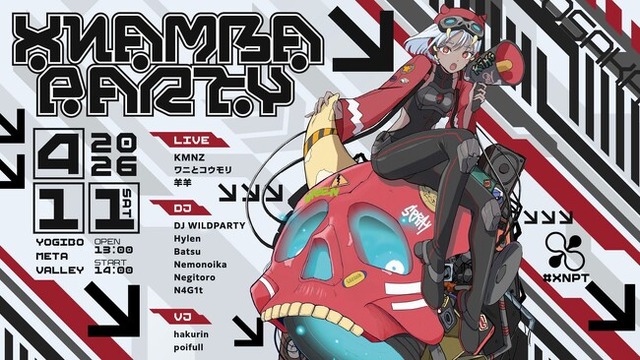 DJ陣は、東京のみならず海外でも活躍するトップDJ・DJ WILDPARTYをはじめ、Batsu、Hylen、Nemonoika、Negitoro、N4G1tといったバーチャルシーンのクラブイベントには欠かせないラインナップのほか、ライブアクトとして、バーチャルガールズHIPHOPユニットとして高い人気と知名度を誇るKMNZや、ワニとコウモリ、羊羊が出演決定。KMNZは昨年開催の「XNAMBA MUSIC FESTIVAL」(昼の部)でトリを飾ったが、今回はクラブスタイルで再び難波に登場。さらにVJとしてhakurinとpoifullを迎え、総勢11組の出演者による新感覚のクラブ体験をお届けします。