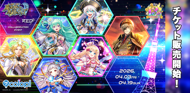 本日よりコラボイベントの入場チケット販売を開始しております。入場特典として「13th Anniversary」のイラストを使用したブロマイド2種セットをプレゼントします。[画像3: https://prcdn.freetls.fastly.net/release_image/4473/1921/4473-1921-ef7d47b7f80c6ed63e5d3228db4ddb50-650x900.png?width=536&quality=85%2C75&format=jpeg&auto=webp&fit=bounds&bg-color=fff ]