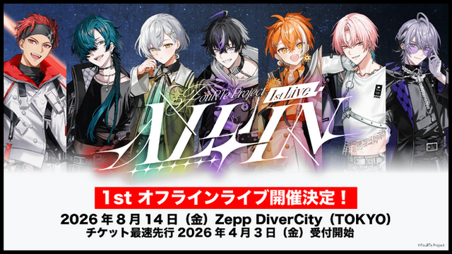 株式会社ClaN Entertainment(本社:東京都港区、代表取締役社長:大井基行)がプロデュースする7人組バーチャルアイドルグループ「FouRTe Project(フォルテ・プロジェクト)」が、グループ初となるオフラインライブ「FouRTe Project 1st LIVE "ALL IN"」を2026年8月14日(金)にZepp DiverCity(TOKYO)にて開催することが決定しました。