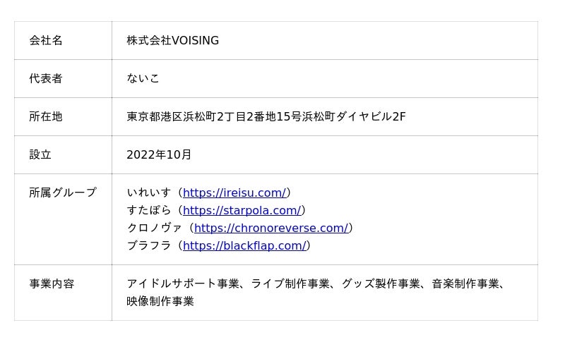 「いれいす(イレギュラーダイス)」とは、「株式会社VOISING」に所属する、人気急上昇中の6人組2.5次元アイドルグループです。2020年10月に結成され、歌ってみた動画やオリジナルソング、バラエティ動画の投稿や、生配信を中心に活動しています。インターネットの外では、ライブコンサートやコラボイベントも開催しており、今急速に人気を高めている注目のグループです。2023年には全国6都市を回るホールツアーを完走し、2024年2月には、ファンとの約束であり夢であった結成3年での日本武道館ライブを実現しました。2024年11月30日(土)・12月1日(日)には自身初となるドーム公演をベルーナドームにて2日間開催。2025年夏には「いれいす」として初めてとなる全国アリーナツアーにて9万人を動員し完走。[画像7: https://prcdn.freetls.fastly.net/release_image/115076/111/115076-111-021ac522fa98365ab3cb49eabe278c77-2500x1767.png?width=536&quality=85%2C75&format=jpeg&auto=webp&fit=bounds&bg-color=fff ]