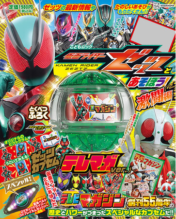 その変身ベルトである、DXゼッツドライバーと武器のDXブレイカムゼッツァーにもセットして遊べる「ゼッツカプセム(テレマガ ver.)」がつく『仮面ライダーゼッツとあそぼう! 激闘編』が3月26日に発売になります。「ゼッツカプセム(テレマガ ver.)」はバンダイ製の本物ふろく。仮面ライダーとともにあゆんだテレビマガジン創刊55周年の歴史とパワーがつまったスペシャルなカプセム。オリジナルのピクトグラムが動いてみえます。もちろん、変身ベルトであるDXゼッツドライバーと武器のDXブレイカムゼッツァーに連動して、かっこいい音が出ます。どんな声が出るのかは、以下のアドレスをクリック!