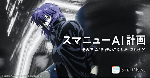 今回、1989年の連載開始以来、人間とAI、ネットワークが高度に融合した近未来社会を描き、世界的な評価を受けてきたSF作品『攻殻機動隊 S.A.C.』とコラボレーションを展開します。 情報の境界が消失した社会で情報の真価を問い続けてきた同作の世界観と、AIを活用することで、誰もが情報の海から本質を見つけ出せるよう支えていきたいというスマートニュースの方向性が通じ合うと考え、今回のコラボレーションに至りました。
