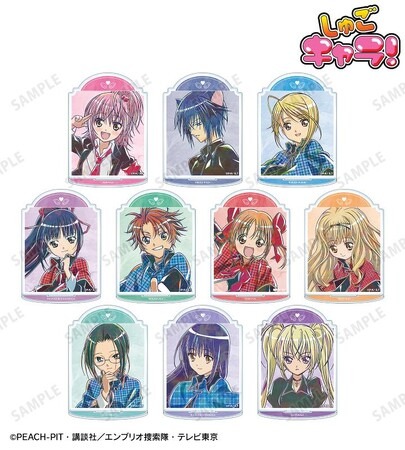 日奈森 あむ、月詠 イクト、辺里 唯世、藤咲 なでしこ、相馬 空海、結木 やや、真城 りま、三条 海里、藤咲 なぎひこ、ほしな 歌唄のイラストを新たなタッチで魅力的に表現し、アクリルスタンドに仕上げました。