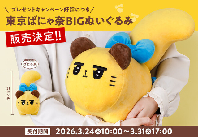 3月24日(火)14:00更新ご好評につき「東京ばにゃ奈 BIGぬいぐるみ」は予定数完売のため販売を終了いたしました。