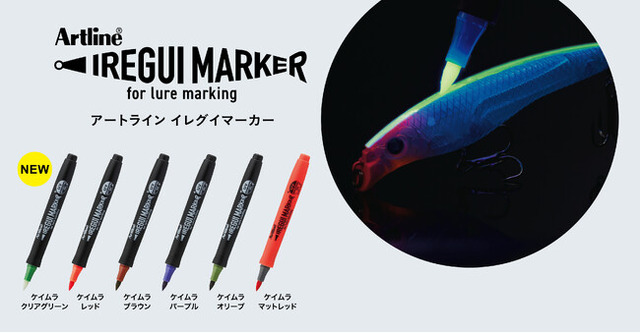 「アートライン イレグイマーカー」シリーズは、ルアーへのペイントとケイムラ(蛍光)加工※2 が、自宅や釣り場で簡単にできる、釣果を伸ばしたい釣り人におすすめのマーカーです。曲面へのペイントがしやすいブラッシュタイプのペン先により、思うようにルアーへの着色ができます。魚の種類、その日の状況やお好みに合わせて手軽に色替えができると好評で、2022年4月の発売以来、多くの釣り人にご愛用していただいております。