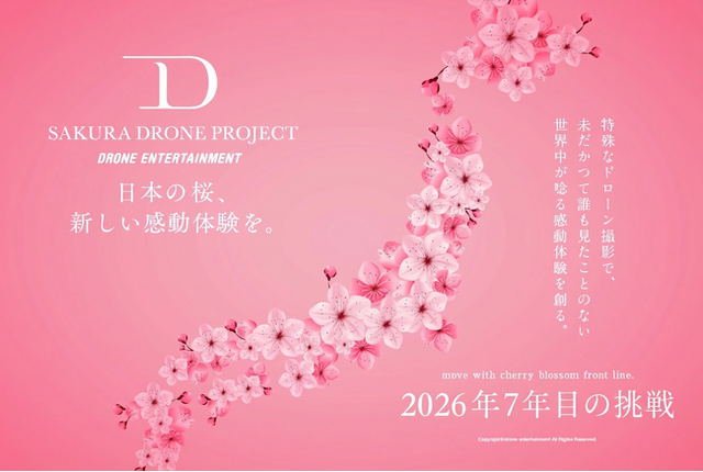 [画像2: https://prcdn.freetls.fastly.net/release_image/53947/33/53947-33-27c0f2f04ef655c99b20acdee417b468-1264x848.png?width=536&quality=85%2C75&format=jpeg&auto=webp&fit=bounds&bg-color=fff ]2020年より開始した、日本の象徴である「桜」を後世へつなぐ文化アーカイブプロジェクトです。自社開発のオリジナルFPVマイクロドローンを用いて、これまで人間が見ることのできなかった鳥の視点で桜を捉えてきました。映像を「見る」から「体験する」へ。6年間で47都道府県180箇所を超える桜を撮影し、すべての映像を協力自治体に無償提供しています。「ひるおび!」「ZIP!」「NHKおはよう日本」など累計100以上のメディア掲載実績や、観光庁・在外公館・大使館・一般企業など多くの皆様への桜映像を提供しております。2026年は、樹齢の高い一本桜を中心に、日本各地を訪れ、これまでの日本の桜を収録した特別作品としてDVD/Blu-Rayを制作いたします。