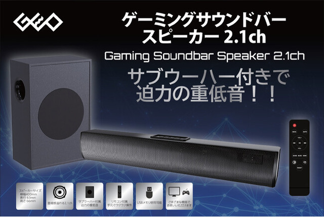 株式会社ゲオホールディングス(本社:愛知県名古屋市中区、代表取締役社長執行役員:遠藤結蔵)のグループ会社である株式会社ゲオストア(本社:愛知県名古屋市中区、代表取締役社長:濱野敏郎)は、サブウーハー付きの2.1ch(チャンネル)ゲーミングスピーカー『ゲーミングサウンドバースピーカー 2.1ch(GRGWS-GSPK M825 BK)』を、2026年3月26日(木)よりゲオ公式インターネット通販(EC)サイト「ゲオオンラインストア」(https://ec.geo-online.co.jp/shop/)にて、2026年3月27日(金)より全国のゲオショップ約790店舗にて順次販売を開始します。