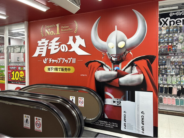 これまでもチャップアップのアンバサダーとして、世の男性たちにエールを送り続けてきた「ウルトラの父」。この度、その圧倒的な存在感と頼もしさを体感できる大型ビジュアルが、ビックカメラ池袋本店に登場。