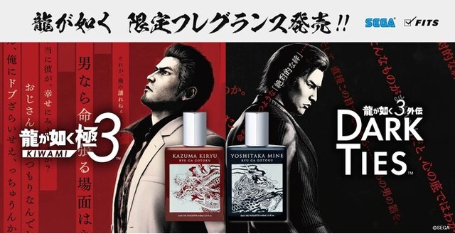 株式会社フィッツコーポレーション(本社:東京都港区、代表取締役:富樫康博)は、株式会社セガの人気ゲームシリーズ最新作『龍が如く 極3 / 龍が如く3外伝 Dark Ties』の発売を記念し、メインキャラクターである桐生一馬と峯義孝の生き様を香りとデザインで表現したコラボレーション香水を発売いたします。
