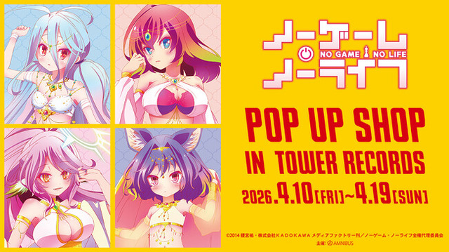 2026年4月10日(金)~4月19日(日)までタワーレコード新宿店、梅田NU茶屋町店、計2店舗とタワーレコード オンラインにて「『ノーゲーム・ノーライフ』 POP UP SHOP in TOWER RECORDS」の開催が決定いたしました。