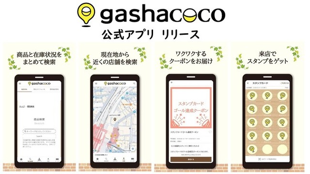 株式会社ハピネット(本社:東京都台東区、代表取締役社長:水谷敏之、証券コード:7552)の子会社である株式会社ハピネット・ベンディングサービス(本社:東京都台東区、代表取締役社長:仁禮 康太)は、同社の展開するカプセルトイ専門店『gashacoco(ガシャココ)』のスマートフォン向け公式アプリ「gashacoco公式アプリ」を、本日よりApp Store、Google Playにて提供開始しました。本アプリには、商品在庫検索機能(※)を搭載しています。