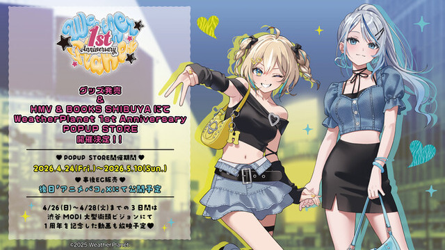 株式会社coly(本社:東京都港区三田、代表取締役:中島杏奈)が運営する「アニメバコ」(https://www.animebako.com/)は、「WeatherPlanet」の活動1周年記念を記念したグッズの販売、それに伴う期間限定POPUP STORE『WeatherPlanet 1st Anniversary』を開催いたしますので、お知らせします。