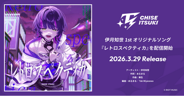 株式会社RIOT MUSIC(本社:東京都港区、代表取締役:舩橋 純、読み:ライオットミュージック、以下「RIOT MUSIC」)は、同社が運営するVSingerレーベル「無原唱レコード」所属のバーチャルアーティスト「伊月知世(いつき ちせ)」による1stオリジナルソング『レトロスペクティカ』を2026年3月29日(日)に各種配信サービスにて配信開始しました。あわせて、イラストレーター・noka氏による描き下ろしイラストを使用した誕生日グッズの販売も開始しています。