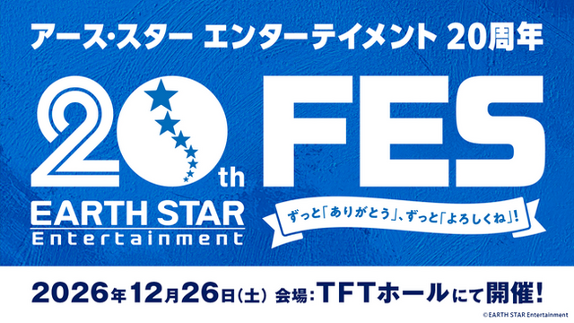 株式会社アース・スター エンターテイメント(本社:東京都品川区、代表取締役社長:幕内和博)は、2026年に創立20周年を迎えました。皆様への長いご愛顧への感謝と周年を記念し、同年12月26日(土)にTFTホールにてフェスを開催いたします。